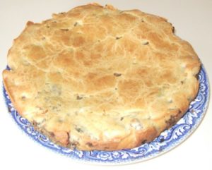 To make the dough: Preheat the oven to 400F. Mix all the ingredients in a big bowl. The dough will be like a biscuit dough. Divide the dough into 2 portions. Pour a little more than the half of the mixture in a 10-inch round spring-clip baking parchment-lined cake pan.